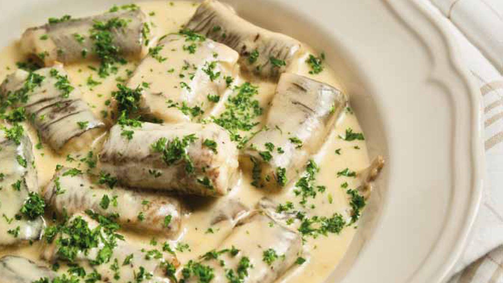 Een klassieke weelderige specialiteit van de Belgische en Nederlandse keuken. De zachte, licht zoete smaak van de paling combineert perfect met een romige, fluweelzachte saus , subtiel op smaak gebracht met boter, witte wijn en een vleugje kruiden